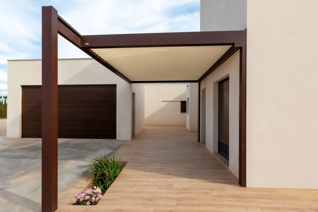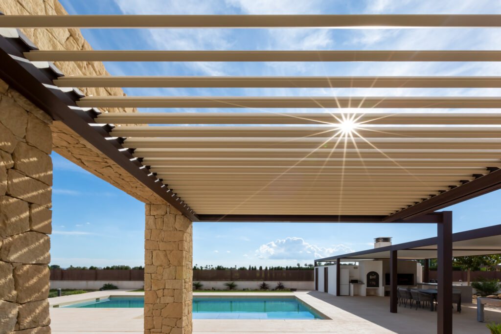 Lamas orientables y diseño minimalista para confort y sombra inteligente todo el año.